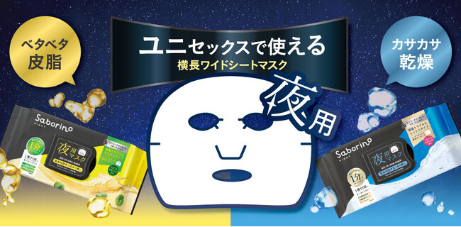 タイパコスメ『サボリーノ』から、ユニセックスな夜用フェイスマスクが9月9日に新登場。肌コンディションで選べる、水分と皮脂のバランスケアマスク。