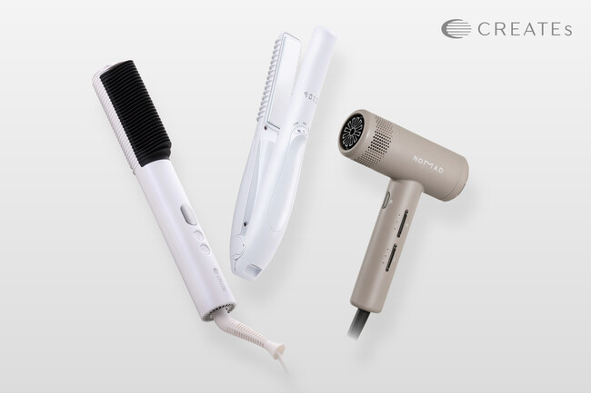 グローバルな視野・独自の視点で技術開発し、新しい美と健康の楽しみを提供し続ける、ヘアサロンでのカールアイロンシェアNo. 1*ヘアケア家電メーカー、株式会社クレイツ(本社:福岡県福岡市、代表取締役社長:貝塚弘幸、以下クレイツ)は、2025年秋冬の新商品として「9012 イオンコードレスストレートアイロン」「ノマドライヤー」「エレメア コームストレイナー」を、2025年9月中旬に発売することをお知らせいたします。