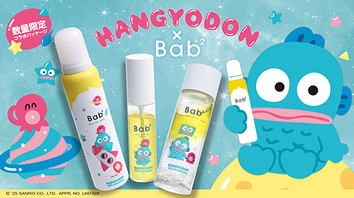 株式会社オージオ(本社:埼玉県上尾市/代表:安野明子)の生ビタミンC*¹配合の毛穴*²ケアシリーズ「Bab²(バブバブ)」は、株式会社サンリオの人気キャラクターで2025年に40周年を迎えた『ハンギョドン』とコラボした限定デザインの「Bab²(バブバブ)ナノバブルオイルローション」「Bab²(バブバブ)ナノバブルVセラム」「Bab²(バブバブ)マイルドピールホイップ」を2025年8月29日(金)に数量限定で新発売いたします。