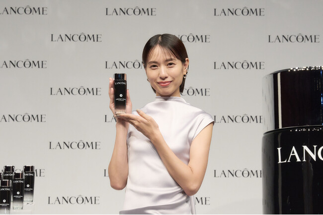 続いて、ランコムのブランド哲学について「私自身、このランコムの世界観を本当に楽しんでいます。心の内側の幸せな気持ちが、見た目の輝きまでも強くすると思うのですが、ランコムが体現するフレンチハピネスは、ただハッピーなだけじゃなくて、ぶれない芯の強さが伝わってくるので、その世界観に入れて、とても嬉しく思います。」とコメントしました。