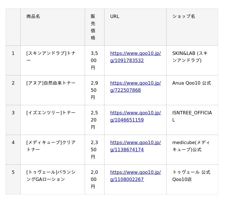 Qoo10(https://www.qoo10.jp/)サイト上、「化粧水」「リップメイク」「アイシャドウ」「チーク」カテゴリーの公式ショップ各販売個数に基づいたランキングです。