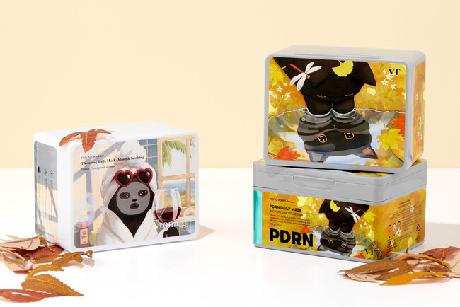 可愛い猫の絵で有名な韓国人イラストレーター「イムデュイ」とのコラボレーション第3弾が実現し、肌悩み別に分けた6種類のVT肌悩みニャンでもおまかせセットをご用意! 限定の黒猫のボックスとポストカードが一緒に同封されます。また、全てのセットにPDRNリードルショットミストが特典で付きます。