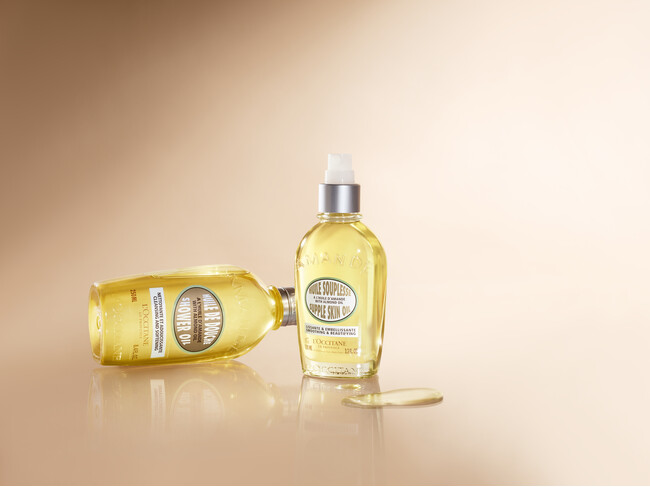 ロクシタンのボディケアアイテムの中でもロングセラーを続けるアーモンドモイスチャライジングシャワーオイル。オイルでボディを洗い上げるユニークなアイテムは世界中で愛されています。冷房や、汗、紫外線などでさらされた夏のボディはインナードライになりがち。そんなボディのために、今秋はたっぷり使える大容量の500mLサイズが限定登場!やさしく贅沢に香るオイルで洗うたびに、肌がどんどんいとおしくなるような、やみつきになる使い心地です。また、美容成分豊富なアーモンドオイル*贅沢にも50%配合した「アーモンド サプルスキンオイル」も限定登場します。サイズは、スプレータイプの100mLと手軽に試せる50mLの2種類。一部店舗(渋谷店・横浜ジョイナス店・銀座三越店)では定番品として展開しているオイルですが、全身に心地よくなじむ、べたつかない軽やかなオイルの使用感で愛されるボディケアです。ぜひこの機会に店頭でお試しください。