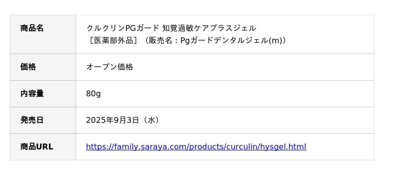 サラヤ株式会社(本社:大阪/代表取締役社長:更家悠介)は、「クルクリンPGガード 知覚過敏ケアプラスジェル」を2025年9月3日(水)より、新発売することをお知らせいたします。