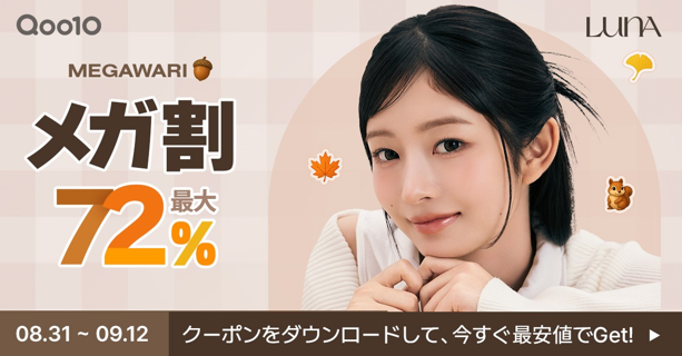 愛敬産業株式会社(本社: Aekyung Tower 188 Yanghwa-ro, Mapo-gu, Seoul, Korea、代表取締役社長:KIM SANG JOON)が展開する韓国発のメイクアップ専門ブランド「LUNA(ルナ)」は、2025年8月31日(日)から9月12日(金)まで開催されるQoo10のビッグセールイベント「メガ割」に参加します。