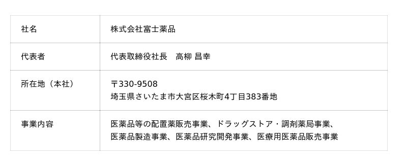 株式会社富士薬品 会社概要 URL:https://www.fujiyakuhin.co.jp