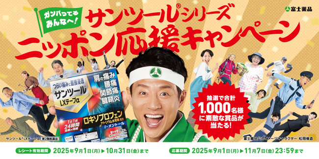 医薬品の開発から製造・販売までを行う複合型医薬品企業の株式会社富士薬品(本社:埼玉県さいたま市 代表取締役社長:高柳 昌幸、以下「富士薬品」)は、2025年9月1日(月)から10月31日(金)までの間、「サンツール(R)シリーズ ニッポン応援キャンペーン」を開催します。