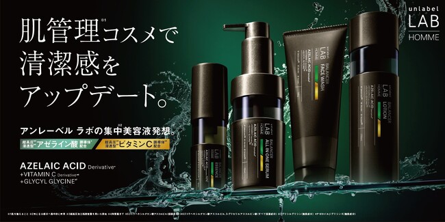 集中*¹美容液発想の「アンレーベル ラボ」から、メンズコスメラインの「アンレーベル ラボ オムシリーズ」が新登場。大人の肌悩みに集中※1アプローチ!肌管理*²コスメで清潔感をアップデート!