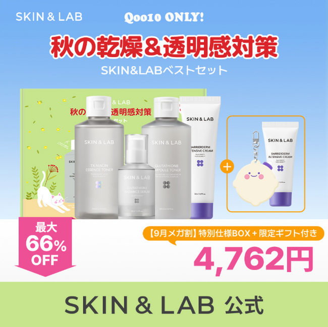 韓国発ドクターズコスメブランド「SKIN&LAB(スキンアンドラブ)」は、「8月 31日(日) 17:00~ 9月 12日(金) 23:59」開催される Qoo10メガセール にて、限定の「企画セット」を販売いたします。