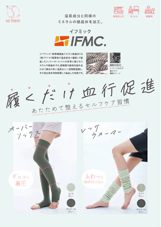 フランス語で「Soi=自分」「Therm=温泉」を意味する「Soi Therm」は、温泉成分に着目して開発された独自素材「イフミック(IFMC.)」を使用し、“履くだけ”で血行を促進。