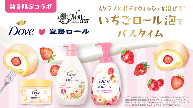 SNSで大好評のダヴ×大人気パティスリーモンシェールコラボ 待望の第2弾! スクラブとボディウォッシュを混ぜて※1楽しむ「いちごロール泡」で新感覚バスタイム 「ダヴ×堂島ロールシリーズ」全2種