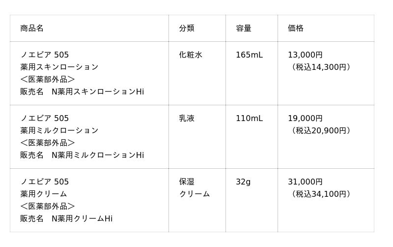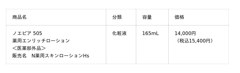 ※ノエビアスタイルでは、「ノエビア 505 薬用スキンローション」「ノエビア 505 薬用ミルクローション」「ノエビア 505 薬用クリーム」は2025年10月中の発売を予定しております。「ノエビア 505 薬用エンリッチローション」は2025年12月5日の発売を予定しております。