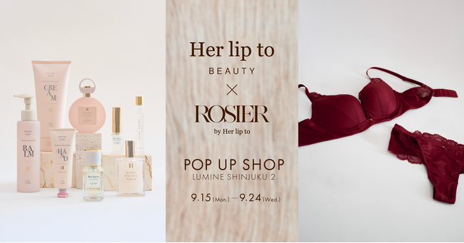 <今年2回目となるブランド合同ポップアップショップ。新作や定番の人気アイテムをラインアップ。>小嶋陽菜がプロデュースする、ビューティブランド「Her lip to BEAUTY」とランジェリーブランド「ROSIER by Her lip to」による合同ポップアップショップが、9月15日(月)~9月24日(水)の期間限定でルミネ新宿 ルミネ2にて開催が決定いたしました。