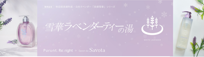 本イベントでは、「美郷雪華」を使用した「Purunt.」と「Savon du Savota」の限定ヘアケア製品を体験できるほか、今回のコラボレーションでしか楽しめない美郷雪華使用のオリジナル変わり湯「雪華ラベンダーティーの湯」も登場します。