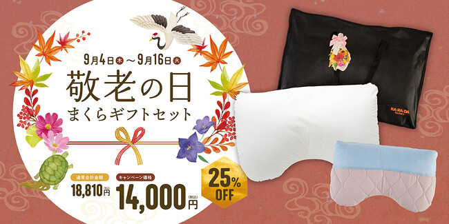 敬老の日に「寝ながら健康ケア」を贈ろう。カラダファクトリー公式通販サイトにて”敬老の日まくらギフトセット”を期間限定で販売