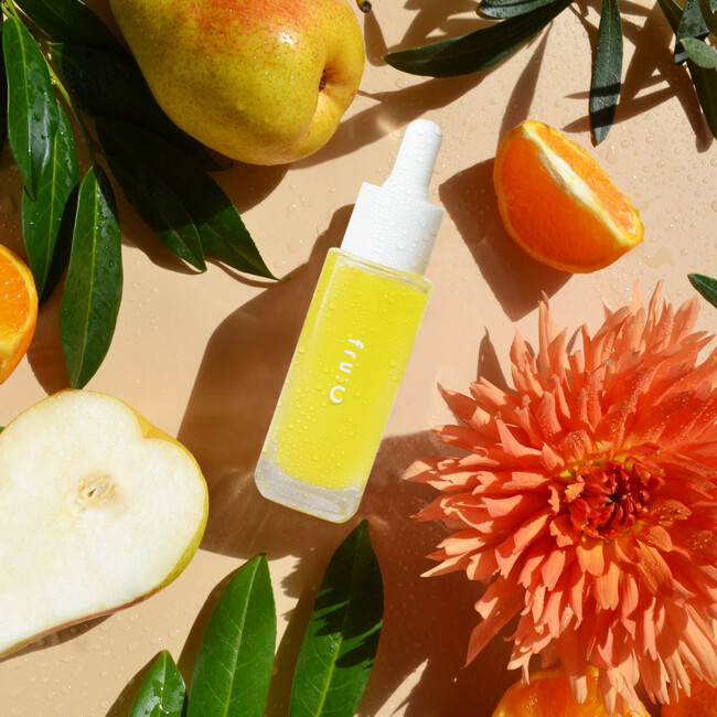 また、くすみや透明感を引き出す<アセロラエキス>、うるおいやキメを整える<グレープフルーツ果実エキス>、ハリや弾力アップに効果的な<リンゴ幹細胞エキス>などの、フルーツ由来の美容成分を凝縮しています。