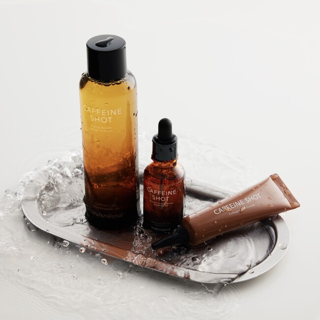 光老化と熱老化に向き合う韓国発スキンケアブランドshaishaishai〈シャイシャイシャイ〉より、カフェインを配合し、毛穴目立ちや、肌のくすみなどの肌印象のお悩みにアプローチする「カフェインショットシリーズ」から「カフェインショット トーニングブースター」、「カフェンショット ビタC トーニングセラム」、「カフェインショット アイクリーム」の3製品が新発売。