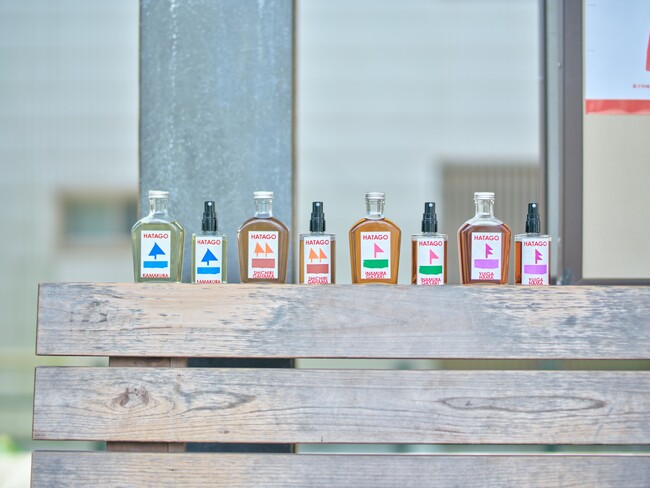 HATAGOが第一章として展開する鎌倉・七里ヶ浜・稲村ヶ崎・由比ヶ浜をテーマにした全4種類の香りを展示し、訪れる方々に「香りで楽しむ新しい鎌倉体験」をお届けします。