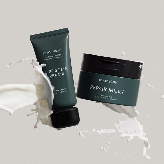 光老化と熱老化に向き合う韓国発スキンケアブランドshaishaishai〈シャイシャイシャイ〉より、光によるダメージを受けた肌を、ミルキーなテクスチャーでしっとりなめらかなコンディションへ導く「リペアミルキーシリーズ」から「リポソームリペア ミルキークリーム」と「リペアミルキー スキンピールパッド」の2製品が新発売。