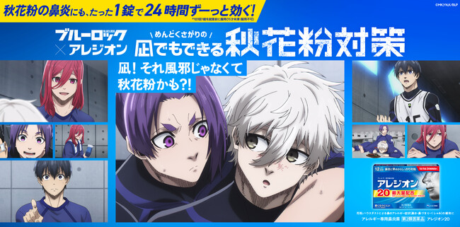 エスエス製薬株式会社(本社:東京都新宿区、代表取締役社長:ニクヒレッシュ・カルラ)のアレルギー専用鼻炎薬 「アレジオン20」(第2類医薬品)は、大人気TVアニメ『ブルーロック』とコラボレーションした期間限定キャンペーンを2025年9月20日(土)から開始します。アレジオンはアレルギー性鼻炎に「1日1回、1錠で24時間効果が続く」から、めんどくさがりの方にもピッタリ。そこで『ブルーロック』の作中きってのめんどくさがりである凪 誠士郎をメインキャラに、春と比べて話題にされにくい秋の花粉症を啓発しながら、花粉症による鼻炎に悩む方々が秋の外出を楽しめるような様々な施策を行っていきます。