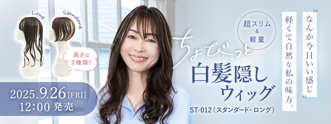 1992年創業のウィッグメーカー株式会社プリシラ(本社:兵庫県神戸市)は、2025年9月26日(金)に『ちょびっと白髪隠しウィッグ』を発売いたします。