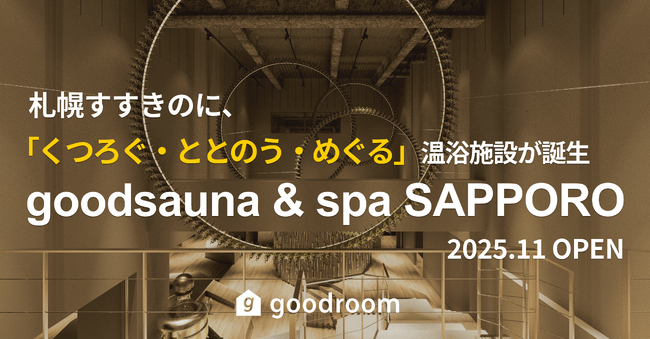 gooddaysホールディングス株式会社(代表取締役社長:小倉博)の子会社グッドルーム株式会社(代表取締役社長:小倉弘之、以下「グッドルーム」)は、北海道札幌市中央区の複合商業施設「COCONO SUSUKINO(ココノ ススキノ)(以下、本施設)」の3階及び4階 に滞在型温浴施設「goodsauna&spa SAPPORO」(以下、本サウナ)」を2025年11月に開業いたします。さらに10月15日より、クラウドファンディングサイトmakuake上で先行チケットの販売開始をお知らせします。