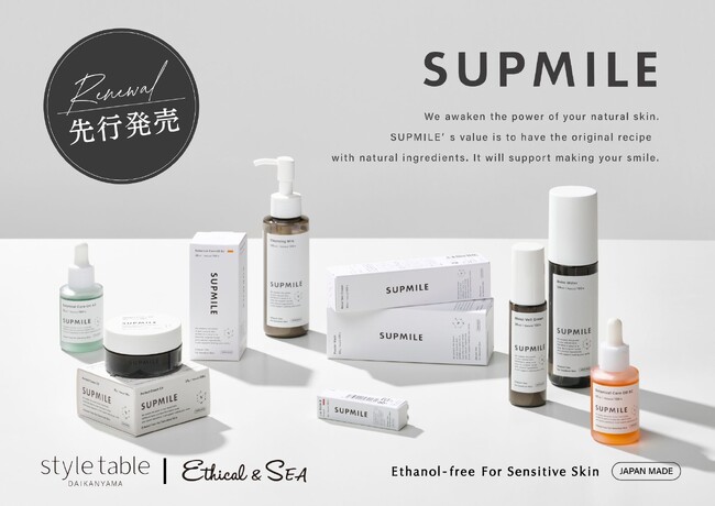 ナチュラルスキンケアブランド『SUPMILE』が、より機能的にスタイリッシュにリニューアル。全国での発売に先駆けて、style table/Ethical&SEA全店で先行発売を開始します。