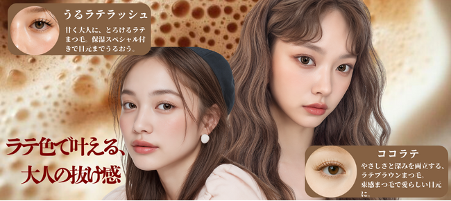 秋限定まつげメニューのイメージテーマは”latte(ラテ)”を採用。やさしさと深みを両立するラテブラウンまつ毛「ココラテ」と、甘く大人に、とろける保湿スペシャルケア「うるラテラッシュ」