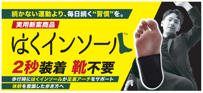 2秒装着で「足裏から、体を変える」理学療法士が開発した“履くだけで”アーチを整える『はくインソール』がMakuakeにてクラウドファンディング先行販売