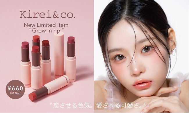 「Kirei&co.」は、「新しいコスメがたくさん欲しい」「トレンドメイクを手軽に試してみたい」「コスパ良いものがいい」というニーズに応えるため、メイクやスキンケアをもっと欲張りに、もっと自由に、もっと気軽に、その希望を叶えるブランドとして2022年3月に誕生しました。様々なアイテムやカラーを気軽にかつ自由自在に組み合わせて楽しんでいただけるブランドです。 オイルイン仕様で、唇ケアをしながら潤いと可愛らしさをプラスするリップスティックと、目元に輝きをプラスするグリッターライナーを2025年10月15日以降全国のドラッグストア(一部店舗を除く)で発売致します。※グロウインリップのみ数量限定発売。