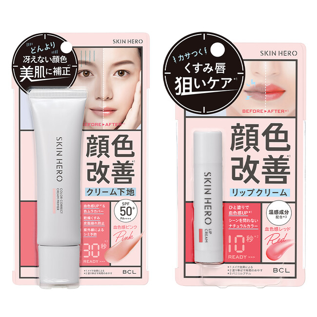 株式会社スタイリングライフ・ホールディングス BCLカンパニー(本社:東京都新宿区、カンパニーエグゼクティブ プレジデント:大村和重)は、メイクシリーズ「スキンヒーロー」より「顔色改善クリーム下地 01 血色感ピンク」と「顔色改善リップクリーム 01 血色感レッド」を2025年10月7日に数量限定で発売します。