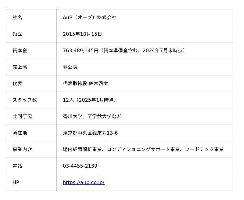 AuBは、2015年10月に創業した、アスリートの腸内細菌を研究する企業です。代表取締役の鈴木啓太は、サッカーJリーグのチーム「浦和レッドダイヤモンズ」のプロ選手(2000.1-2016.1)で、日本代表(A代表)でも活躍した元トップアスリートです。