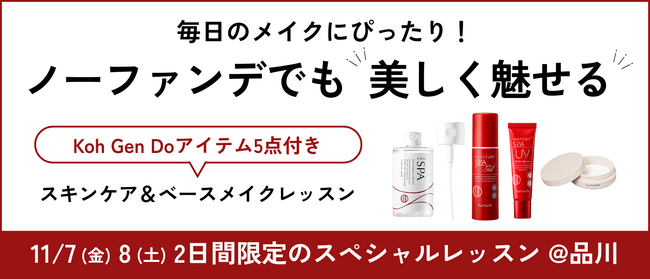 毎日のメイクにぴったり!ノーファンデでも美しく魅せるKoh Gen Doアイテム5点付きスキンケア&ベースメイクレッスン