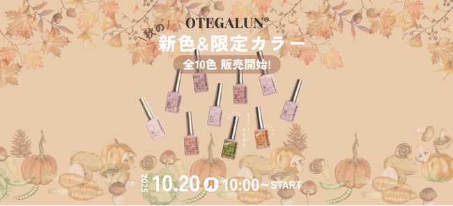 OTEGALUNを運営する株式会社pucklin(本社:大阪市北区)は、2025年10月20日(月)10時より、秋の新色8種に加え、数量限定カラー2種を販売開始いたします。