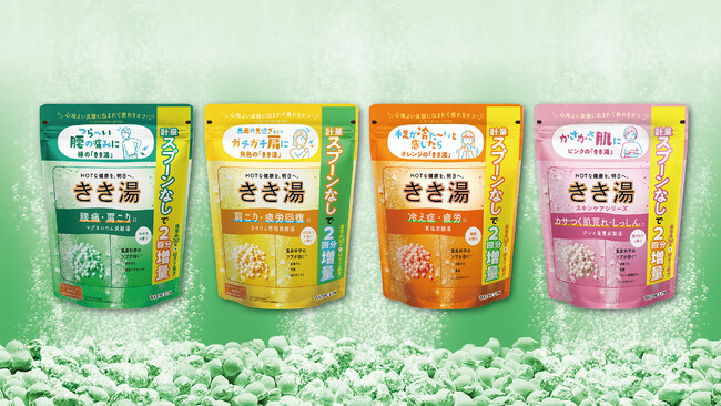 株式会社バスクリン(本社:東京都千代田区 社長:三枚堂正悟)は、心地よい炭酸に包まれてたまった疲れをオフ*¹する入浴剤「きき湯」ブランドより、「マグネシウム炭酸湯」「カリウム芒硝炭酸湯」「食塩炭酸湯」「クレイ重曹炭酸湯」の4アイテムにて、付属の計量スプーンをなくし、2回分増量した企画品を10月27日(月曜日)より数量限定で発売いたします。お客さまの声をきっかけに誕生した、特別な仕様です。