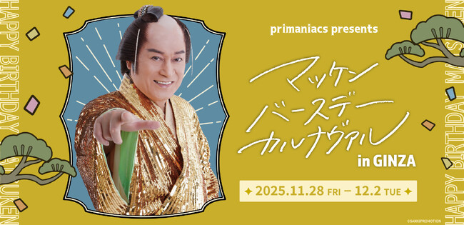 キャラクターフレグランスブランド「primaniacs(プリマニアックス)」(運営:株式会社まさめや/東京都千代田区/代表取締役社長:加藤絢子)は、2025年11月28日(金)より特別企画「primaniacs presents『マツケン バースデーカルナヴァル』in GINZA」を開催いたします。
