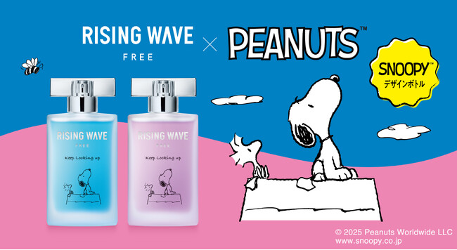 2025年、ブランド誕生20周年を迎えた「ライジングウェーブ」。この記念すべきアニバーサリーイヤーに、ブランドのロングセラーフレグランス「フリーシリーズ」から、スヌーピーデザインの香水が登場します。ピーナッツのコミックに登場する『Keep looking up… That’s the secret of life.』というフレーズ。「人生を通して前向きな気持ちを持ち続けよう」というメッセージは、空と海をテーマに“前向きな自分らしさ”を届けてきた「ライジングウェーブ」の想いと重なります。