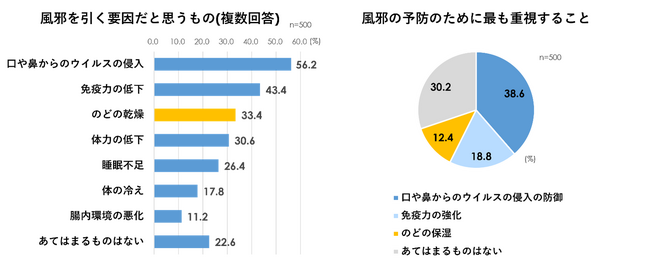 – 「のどの乾燥」が風邪の要因になると思っていない人 約7割、風邪予防で最も重視すること「のどの保湿」約1割