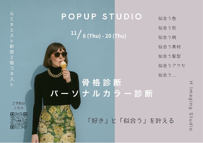【H Imaging Studio】ルミネエスト新宿にてPOPUPスタジオを開催(11/6~11/20 )~骨格診断・パーソナルカラー診断・顔タイプ診断で“似合う”を知る~