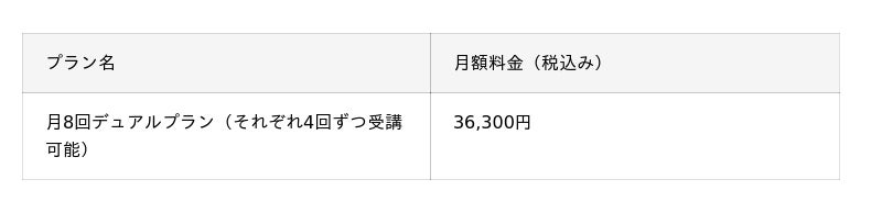 <ウエイトトレーニング×マシンピラティス 料金プラン>