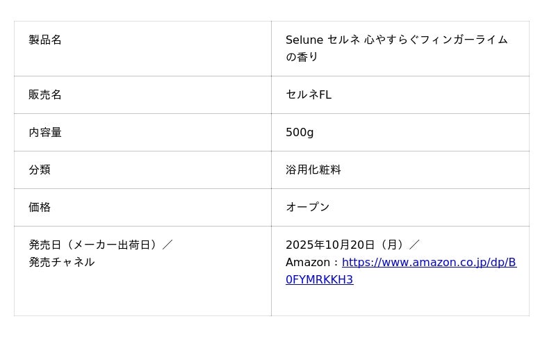 『Selune セルネ 心やすらぐフィンガーライムの香り』 [浴用化粧料]