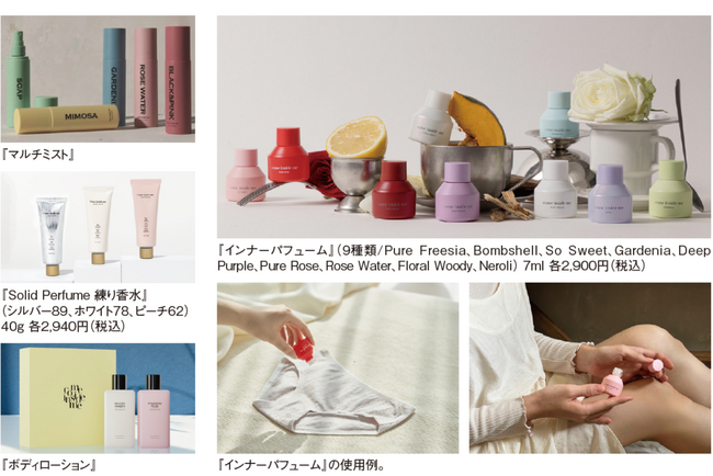 ▶Come Inside Me:韓国発フレグランスブランド。インナー香水が有名、コラボ商品の練り香水は自分のテリトリー内でほのかに香るハンドクリームタイプでCAや看護師の間で評判、チューブタイプで持ち歩きやすく、手指・首筋などに軽く塗布して香る新スタイルを提案。