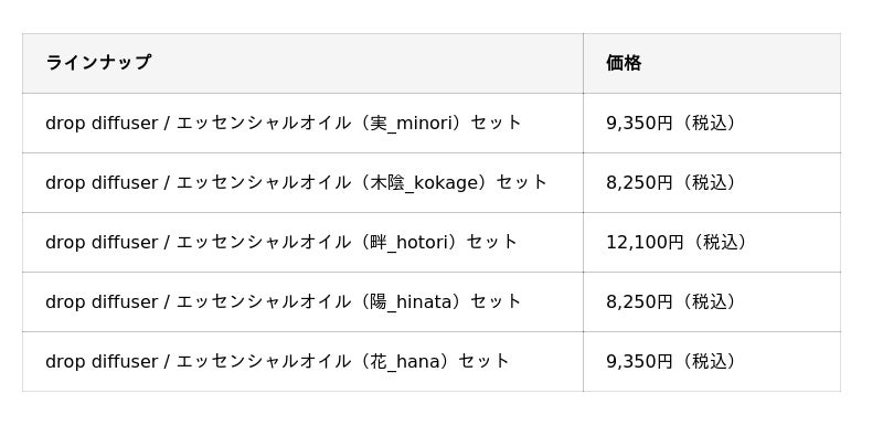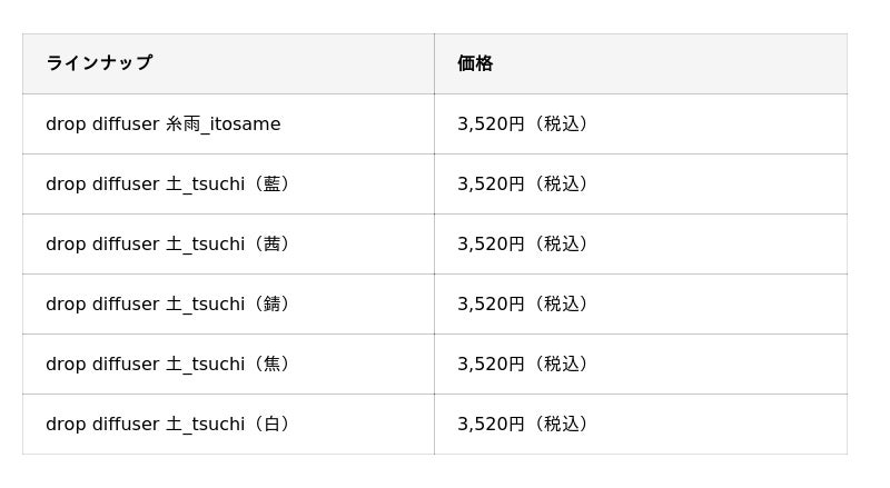 「drop diffuser」6種 3,520円(税込)
