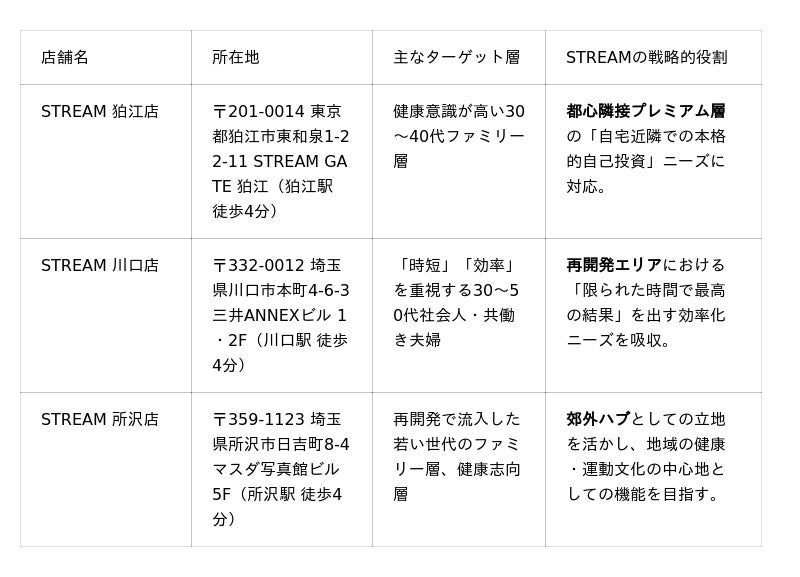 働き盛りの運動不足に挑むパーソナルジムSTREAMが、狛江・川口・所沢で郊外新モデル3店を同時開業。駅近・駐車場・キッズ対応で「通えない理由」をまるごと解消し、長期的な運動習慣につなげる。