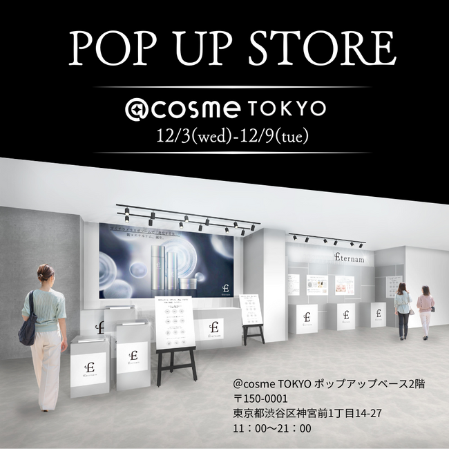 『永遠の美しさへの夢が、 夢に終わらない未来を創りあげること』を使命に掲げる、化粧品の研究開発・製造販売を行う株式会社エテルナム(本社:東京都渋谷区、代表取締役:松本隆明)は、2025年12月3日(水)~12月9日(火)の期間中、@cosme TOKYOポップアップベース2階にてPOP UPを開催。本イベントでは、ヒト臍帯由来間葉系幹細胞培養上清液を高配合したスキンケア製品「エテルナム」シリーズ、話題のリップセラムを実際にお試し、購入いただけます。