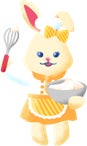 前回登場したバニケルさんの妹で、パティシエのラビケルちゃん。お客様のご要望にあったスイーツをご提案します。生クリームのホイップと洗顔の泡立てテクはピカイチ。