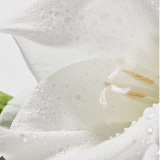 ホワイトハイビスカス*1は、夕方はピンク色に咲き、夜明けには純白に戻るという、時間経過とともに色を変化させる特徴があります。花がもっとも純白に輝く夜明けに収穫し、独自の発酵技術で有用成分を際立たせて抽出。肌本来の明るい印象を引き出し、透明感*2をサポートします。