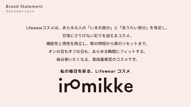 株式会社AXIS ONE(本社:東京都、代表取締役:徐 宇中)が展開するコスメブランド「iromikke(イロミッケ)」は、“私の毎日を彩る、Lifewearコスメ”をコンセプトに、