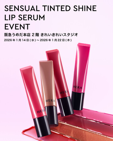 アモーレパシフィックジャパン株式会社(所在地:東京都渋谷区 代表:羅政均)が展開する、韓国・ソウル発のラグジュアリーメイクアップブランド「HERA(ヘラ)」は、2026年1月14日(水)~1月22日(木)の期間、2階 きれいきれいスタジオにて「HERA」SENSUAL TINTED SHINE LIP SERUM EVENTを開催いたします。新商品〈センシュアル ティンティッドシャイン リップセラム〉は、鮮やかな彩りとセラム級の蜜艶を携え、ひと塗りで心まで満ちる一品。気品を纏ったカラーバリエーションの中から感性に寄り添う“自分らしい”1本と出会える特別な1週間です。