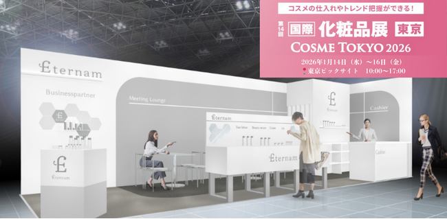 『永遠の美しさへの夢が、夢に終わらない未来を創りあげること』を使命に掲げる、化粧品の研究開発・製造販売を行う株式会社エテルナム(本社:東京都渋谷区、代表取締役:松本隆明)は、2026年1月14日(水)~16日(金)に東京ビッグサイト(東京都江東区)にて開催される第16回 COSME Week 東京【第14回 国際 化粧品展】に出展します。